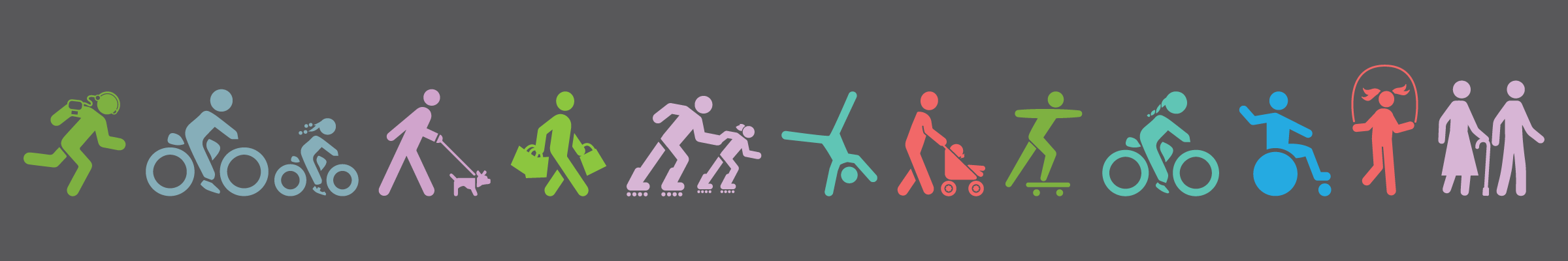 Working with my Creative Director to finalize the logo, I developed a wide scope of materials that lead up to the event, as well as some items for the event itself. Some of the first things I worked on were the icons that would round out the pedestrian icon - aiding in showcasing a variety of activities & types of people who would come out to experience Philly Free Streets.